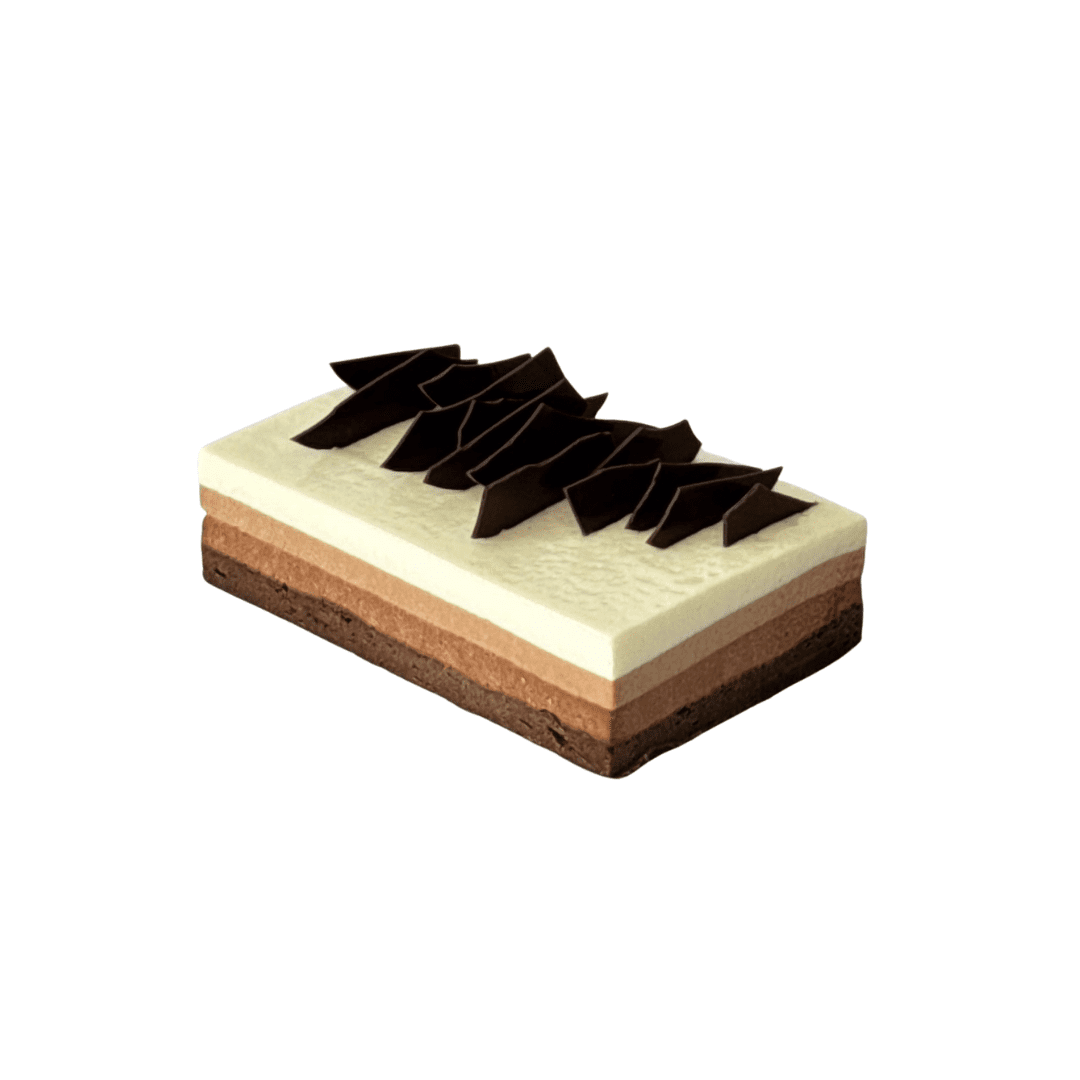 Génoise, crème mousseline vanille, café, chocolat ou kirsch.