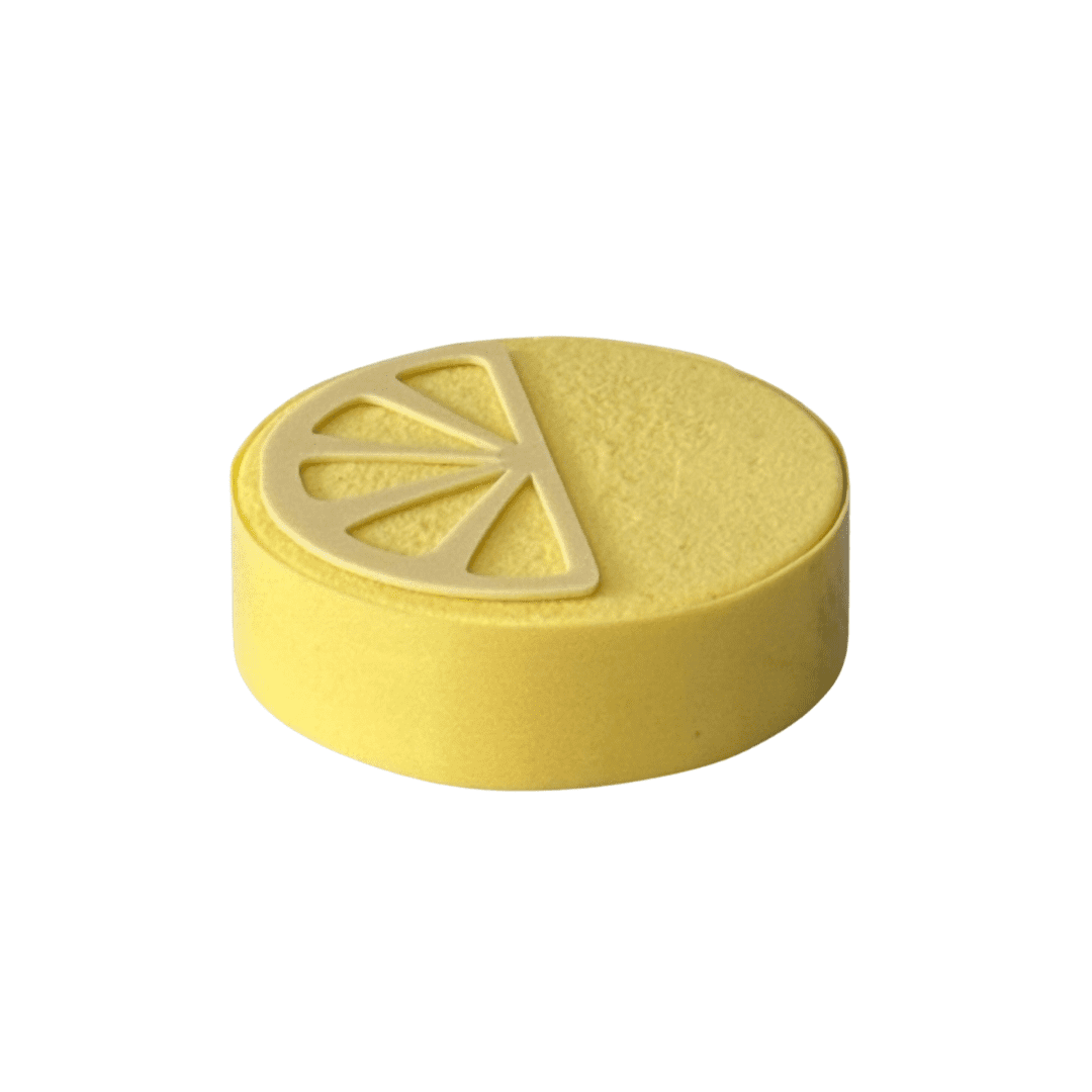 Biscuit madeleine, fonc croustillant, crémeux citron, bavaroise citron